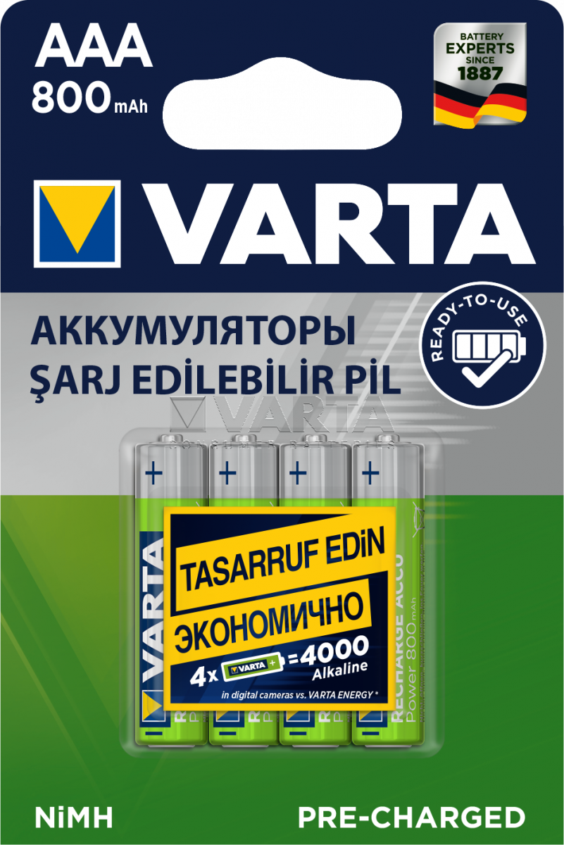 Аккумуляторы VARTA POWER AAA 800мАч бл. 4 (рус.) 56703101414