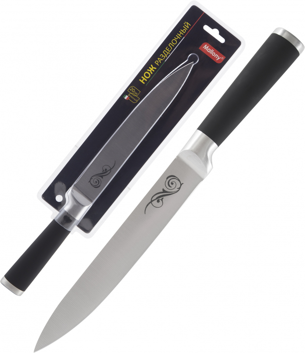 Нож с прорезиненной рукояткой MAL-02RS разделочный, 20 см