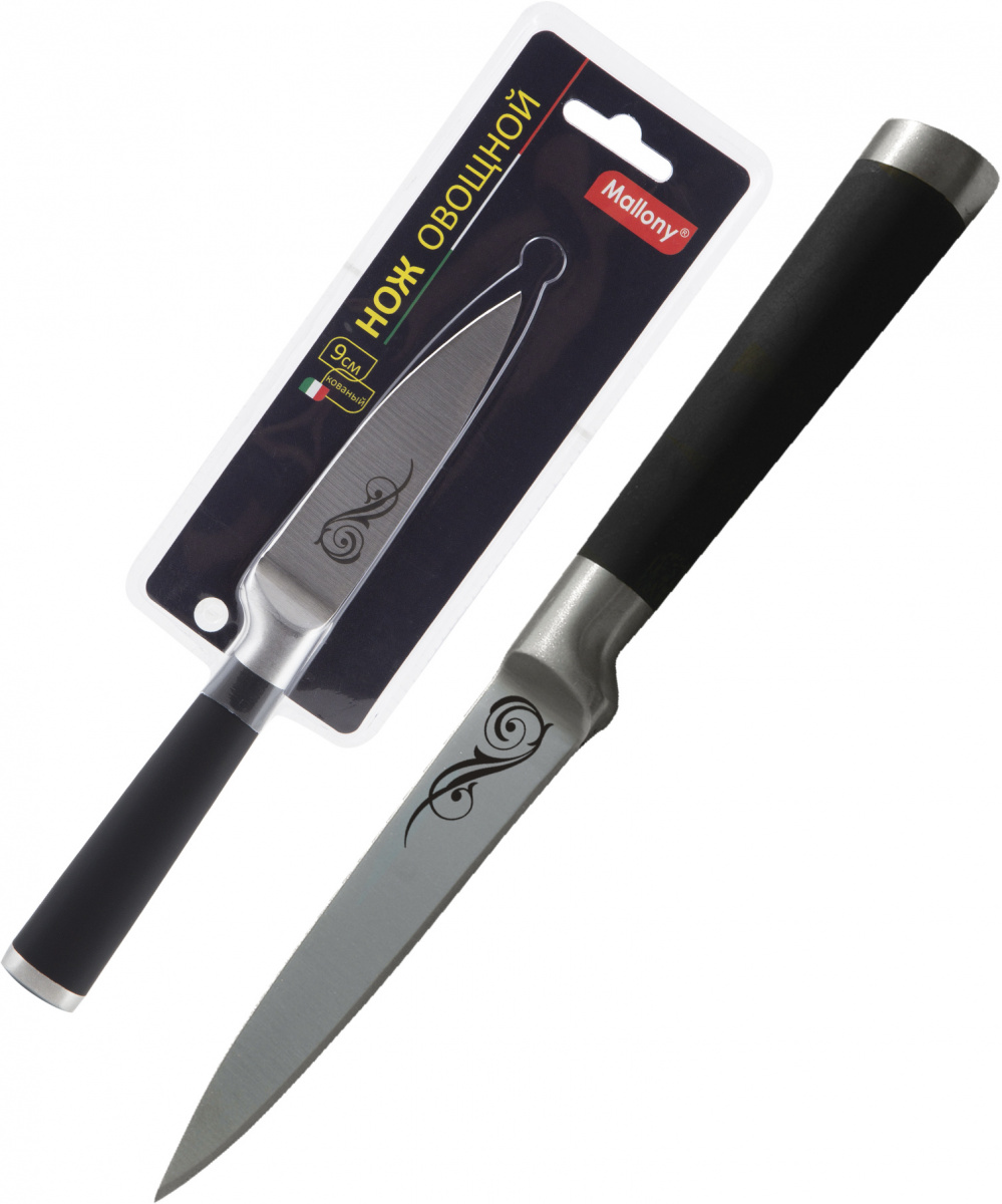 Наша компания реализует Нож с прорезиненной рукояткой MAL-07RS для овощей, 9 см оптом со склада, по минимальным ценам от завода изготовителя.