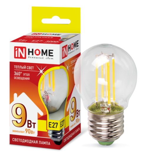 Как купить Лампа светодиодная LED-ШАР-deco 9Вт 230В Е27 3000К 810Лм прозрачная IN HOME в Ростове-на-Дону или Краснодаре