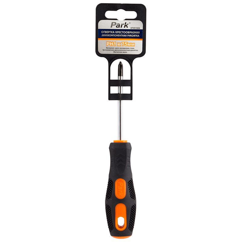 Отвертка крестообразная PH1 х75мм, двухкомпонентная рукоятка OTV015DK