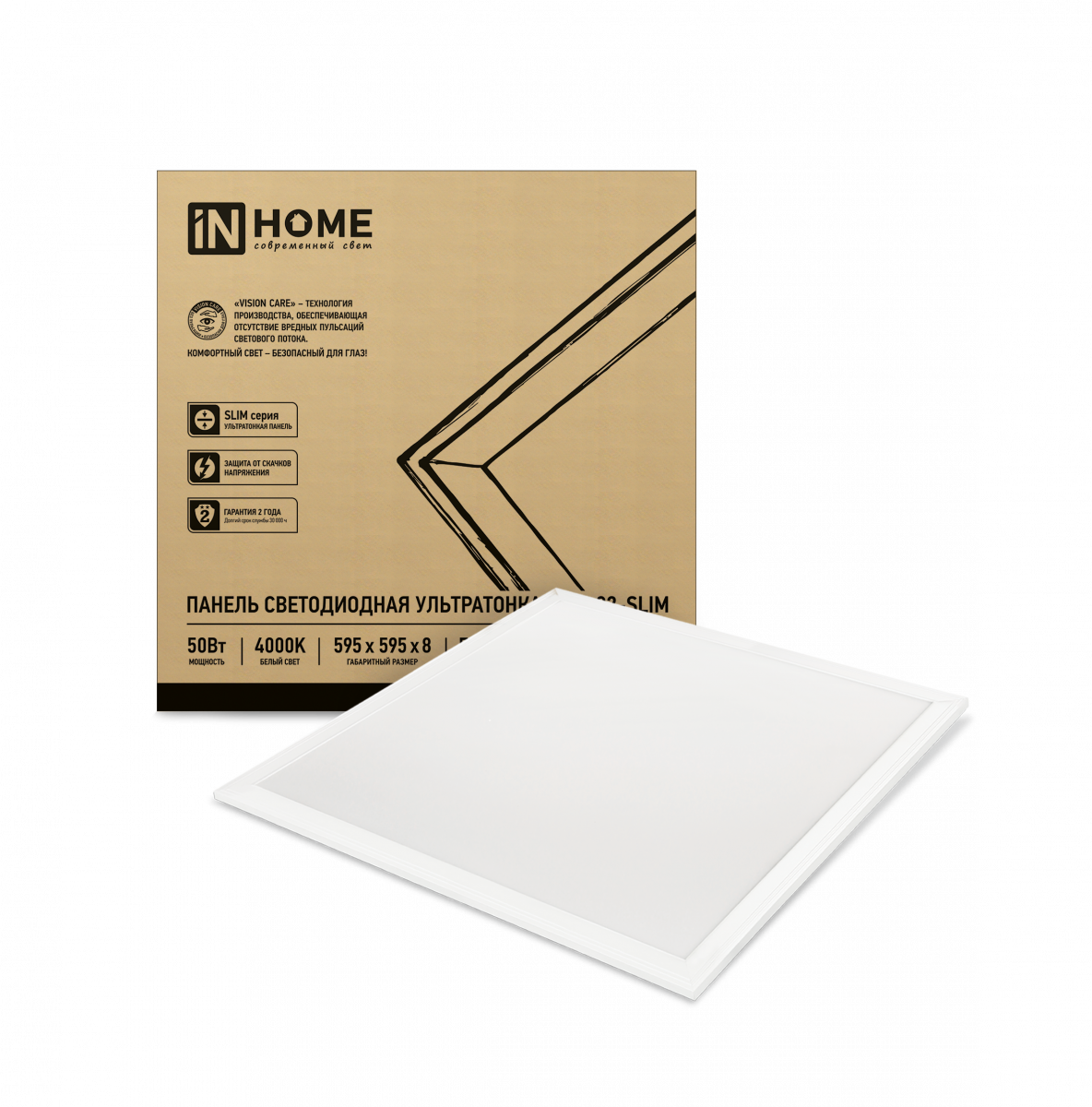 Панель светодиодная ультратонкая LP-02-SLIM 50Вт 230В 4000К 5000Лм 595х595х8мм без ЭПРА БЕЛАЯ IP40 I