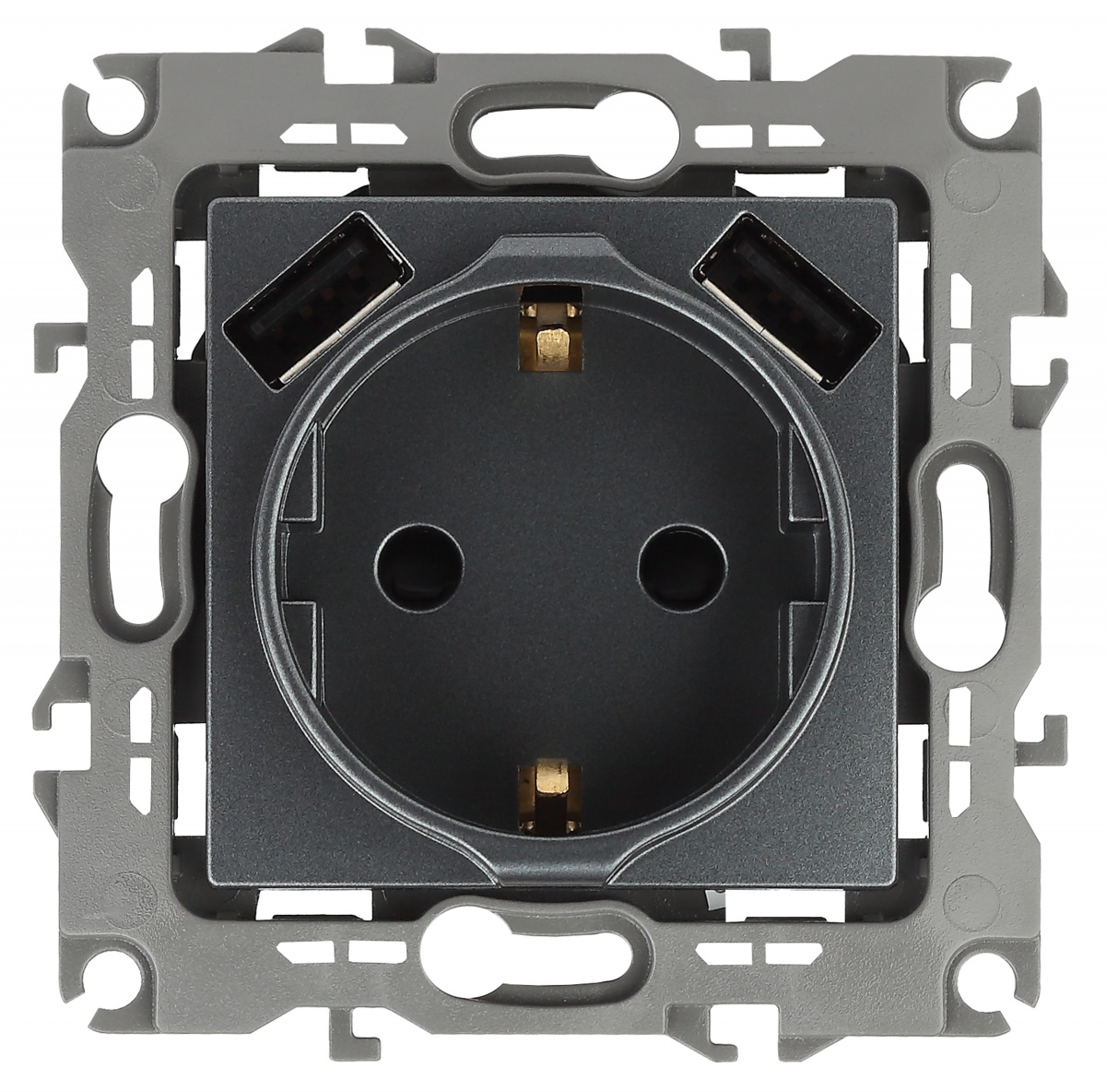 12-4109-12 ЭРА Розетка 2P+E 16A-250В, штор. с 2xUSB 5В-3А, Эра12, графит