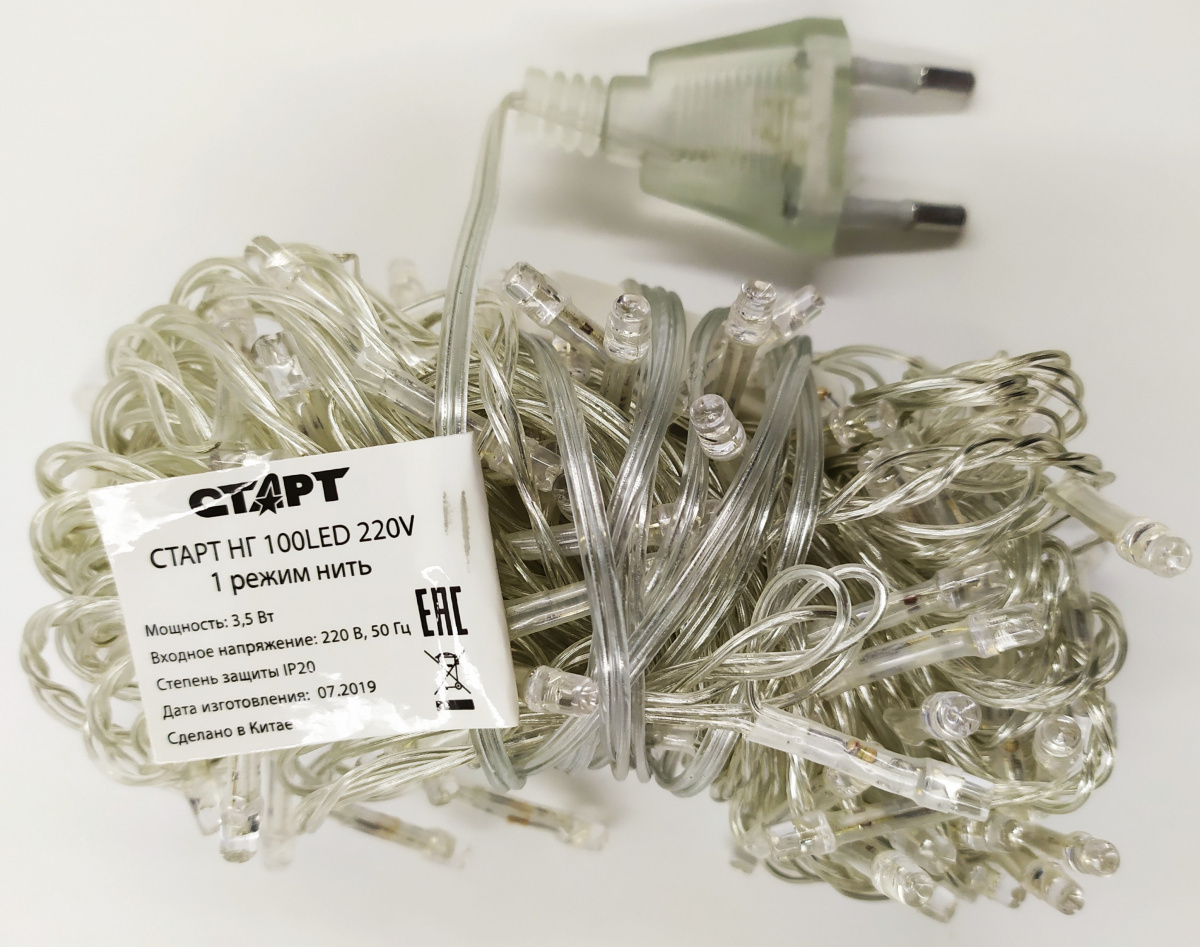 Гирлянда СТАРТ НГ 100LED 220V 1 реж 10м нить