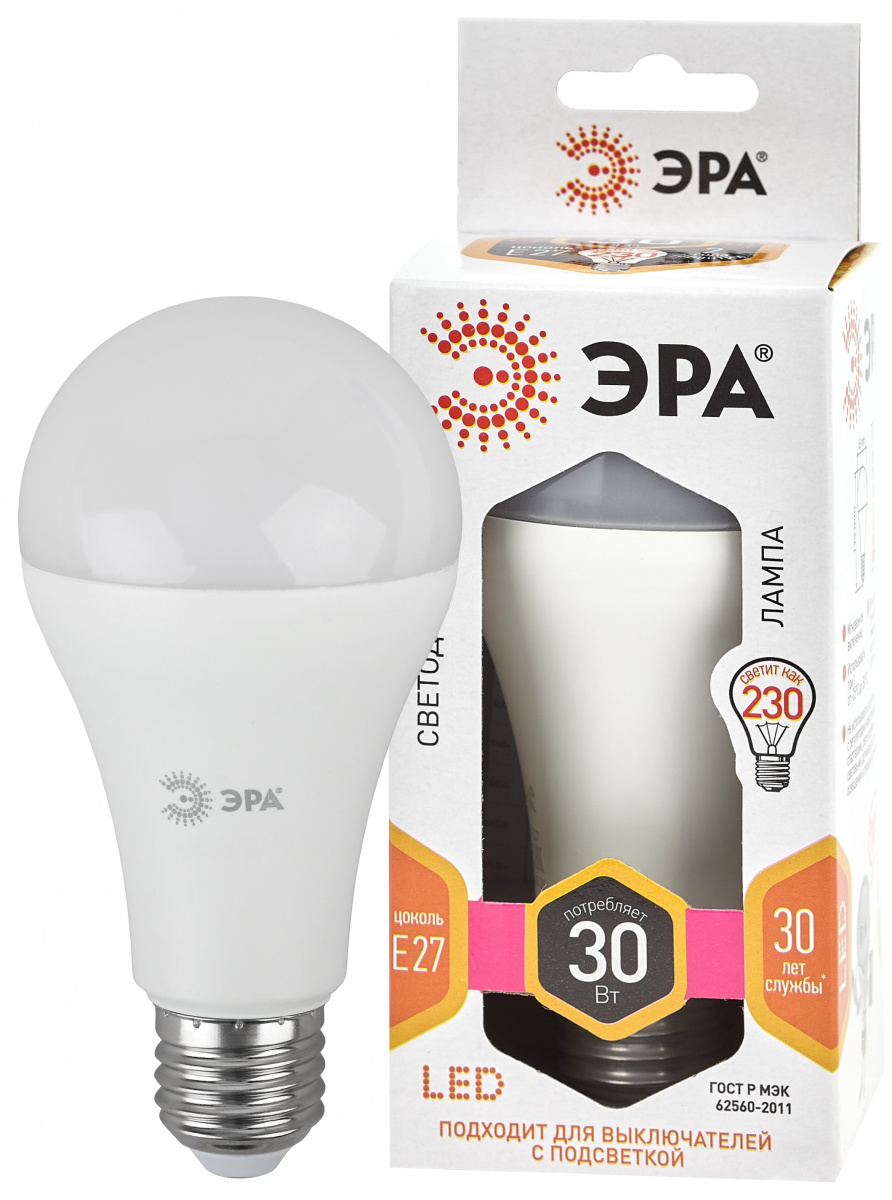 Лампы СВЕТОДИОДНЫЕ СТАНДАРТ LED A65-30W-827-E27 ЭРА (диод, груша, 30Вт, тепл, E27)