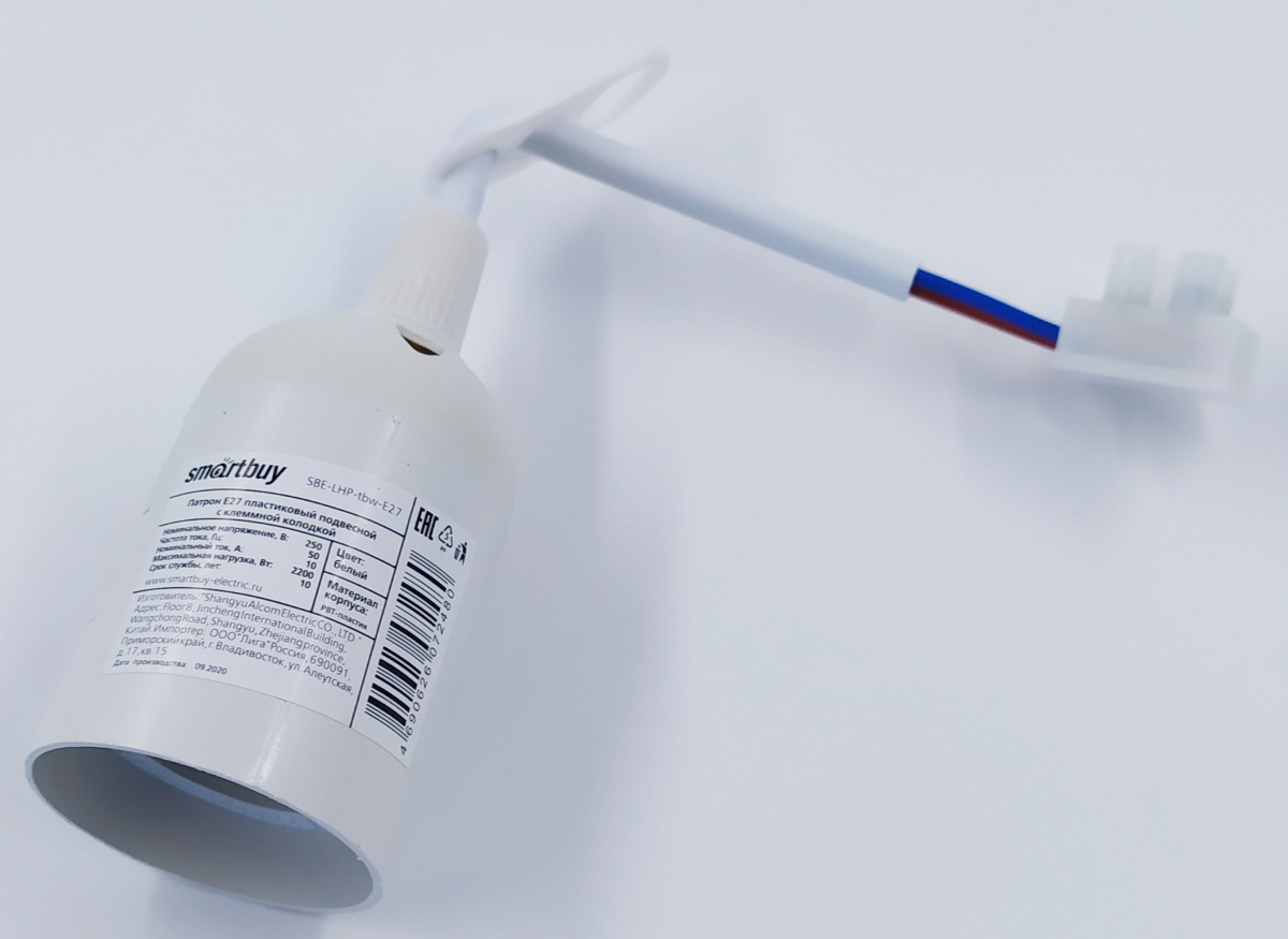 Как купить Патрон Е27 пластиковый подвесной с клеммной колодкой, белый (SBE-LHP-tbw-E27) в Ростове-на-Дону или Краснодаре