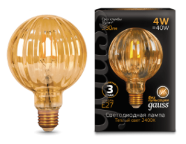 Лампа Gauss Filament G100 4W 380lm 2400К Е27 golden LED 1/20