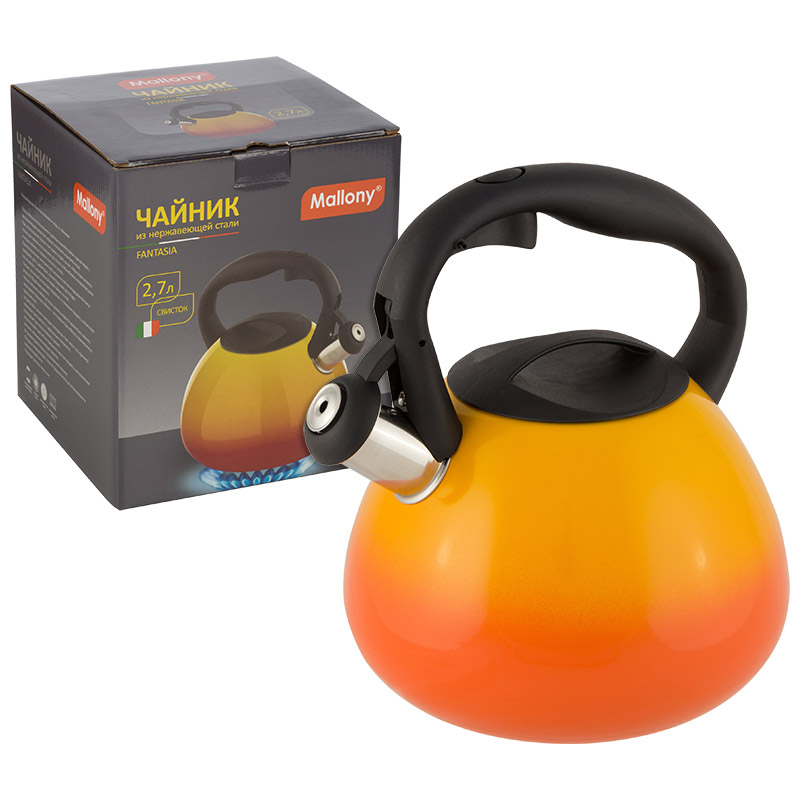 Чайник FANTASIA, объём 2,7 л, из нержавеющей стали со свистком, корпус с переходом цвета