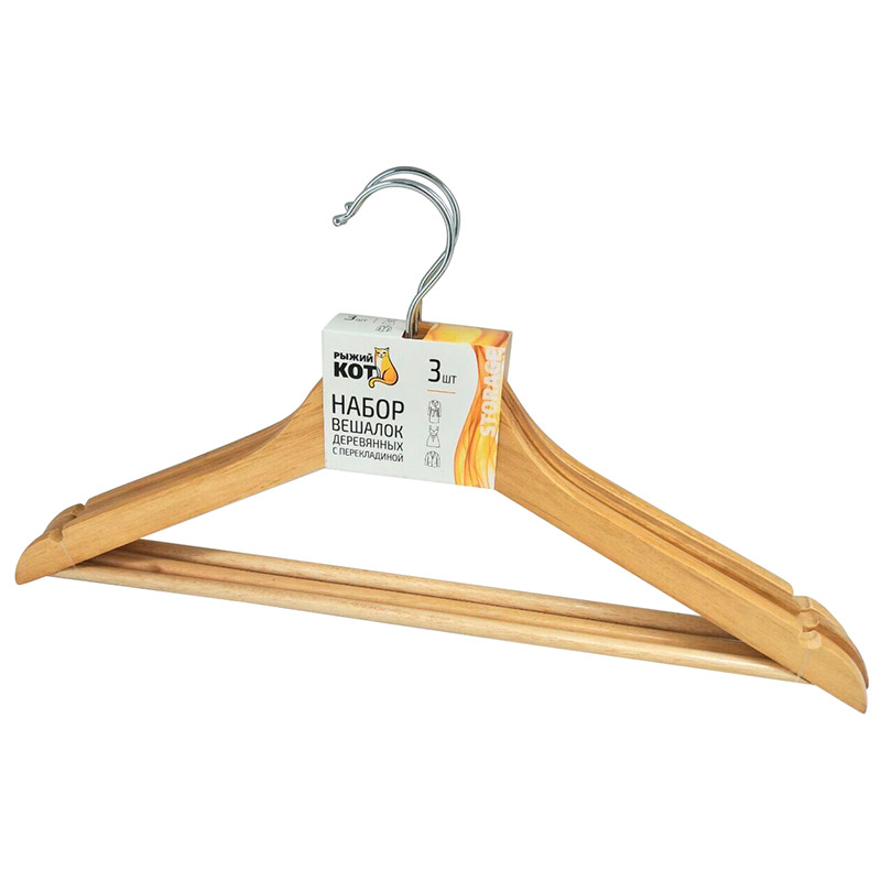 Как купить Набор вешалок деревянных с перекладиной, 3 шт, лак в Ростове-на-Дону или Краснодаре