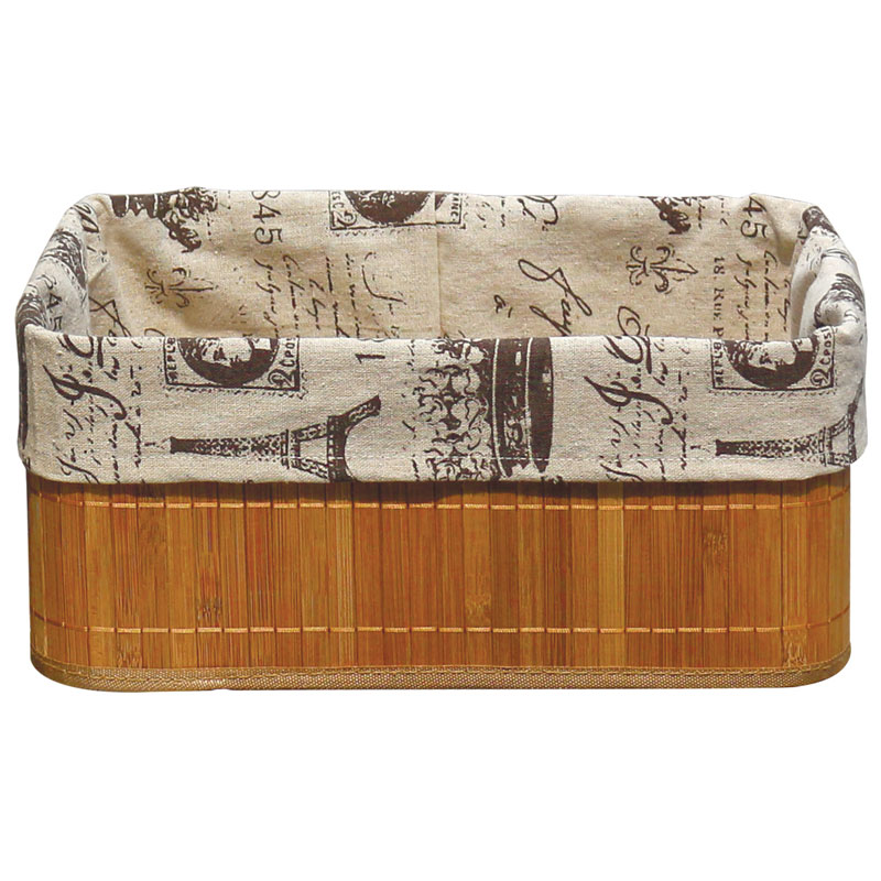 Бамбуковая корзинка с покрытием из натурального льна (каркас: стальной прут) BLB-09-1, р-р 38*28*16