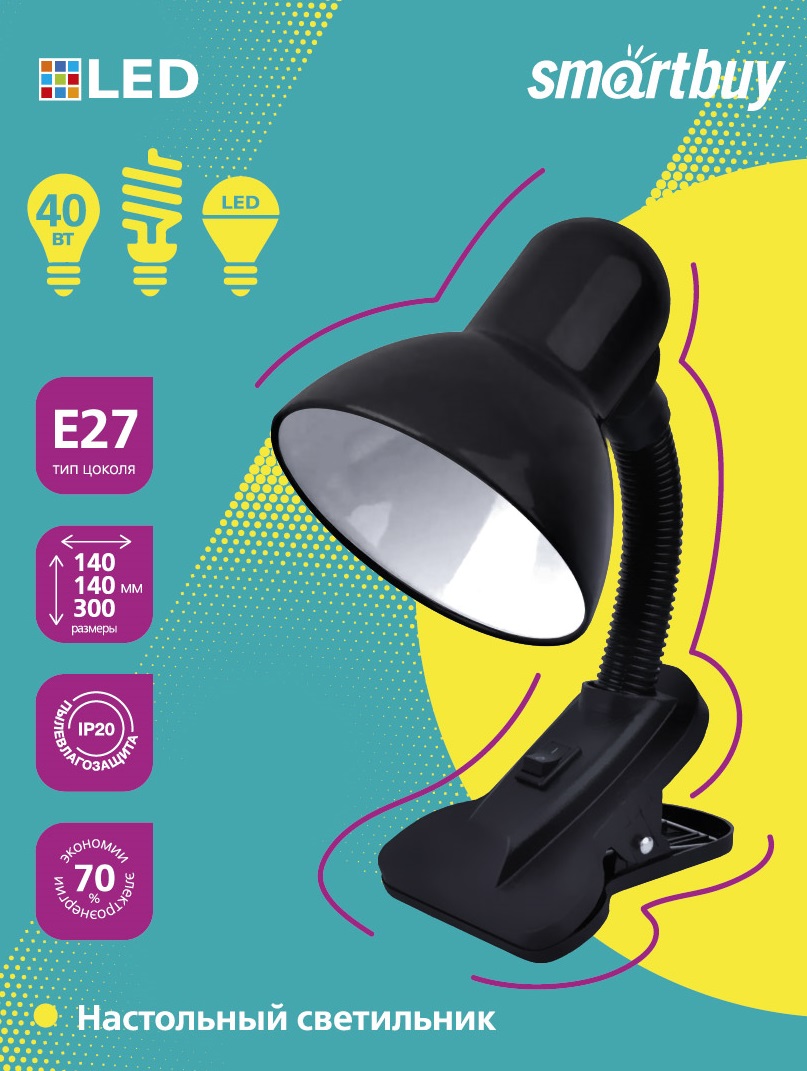 Настольный светильник Smartbuy Е27 с прищепкой Black (SBL-DeskL01-Black)