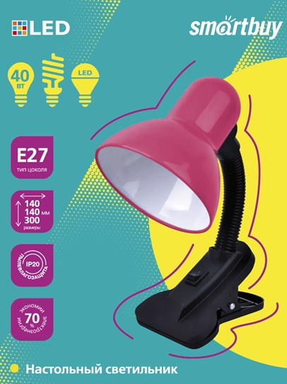 Настольный светильник Smartbuy Е27 с прищепкой Pink (SBL-DeskL01-Pink)