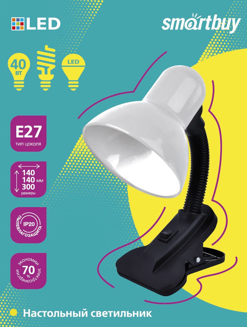 Настольный светильник Smartbuy Е27 с прищепкой White (SBL-DeskL01-White)