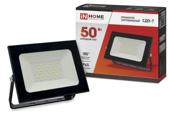 Прожектор светодиодный СДО-7 50Вт 230В 6500К IP65 черный IN HOME