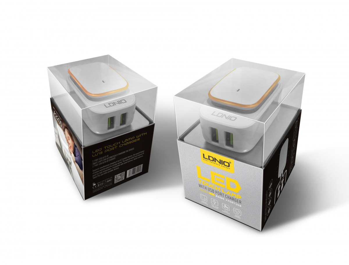 Наша компания реализует LDNIO A2205/ Сетевое ЗУ + Led светил. 2.4W + Кабель Lightning/ 2 USB Auto-ID/ Выход 12W/ White&Gold оптом со склада, по минимальным ценам от завода изготовителя.