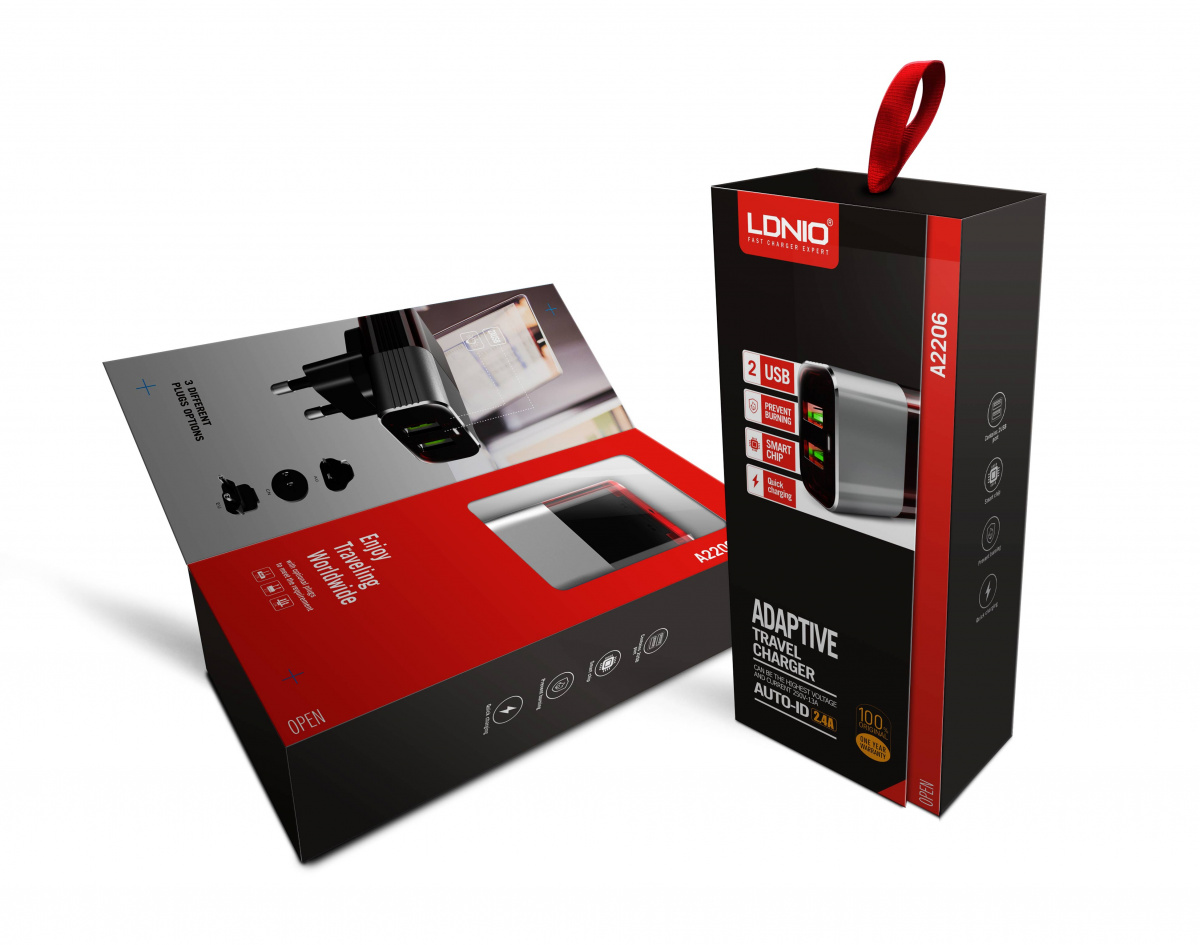 Наша компания реализует LDNIO A2206/ Сетевое ЗУ + Кабель Type-C/ 2 USB Auto-ID/ Выход:12W/ Black&Red оптом со склада, по минимальным ценам от завода изготовителя.