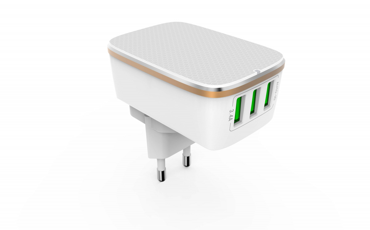 Наша компания реализует LDNIO A3304/ Сетевое ЗУ/ 3 USB Auto-ID/ Выход: 3.4A, max 17W/ White&Gold оптом со склада, по минимальным ценам от завода изготовителя.