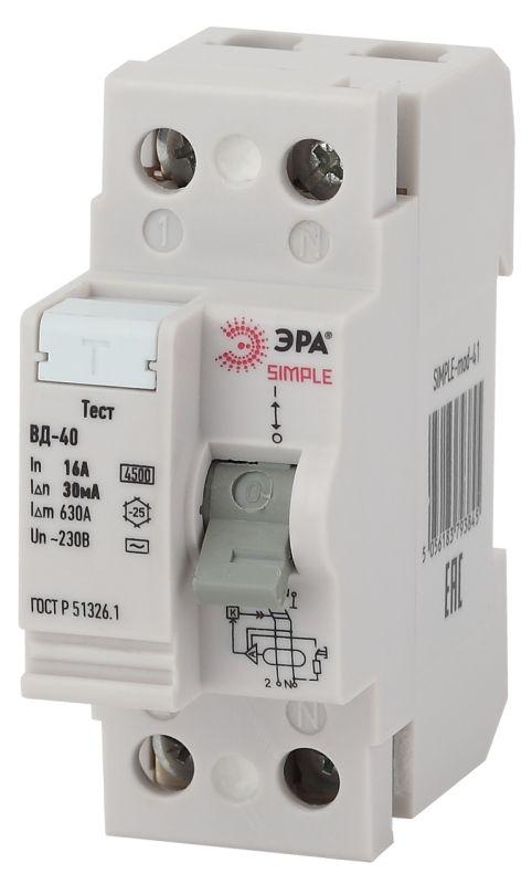 Выключатель дифференциального тока (УЗО) 2п 40А/30мА ВД-40 (электронное) SIMPLE-mod-43 ЭРА Б0039263