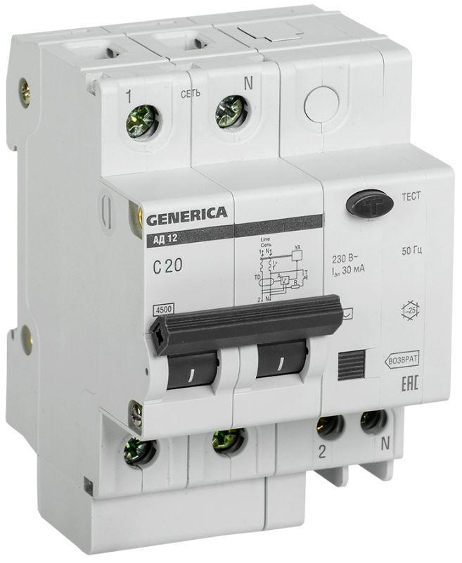Как купить Выключатель автоматический дифференциального тока 2п 20А 30мА АД12 GENERICA IEK MAD15-2-020-C-030 в Ростове-на-Дону или Краснодаре
