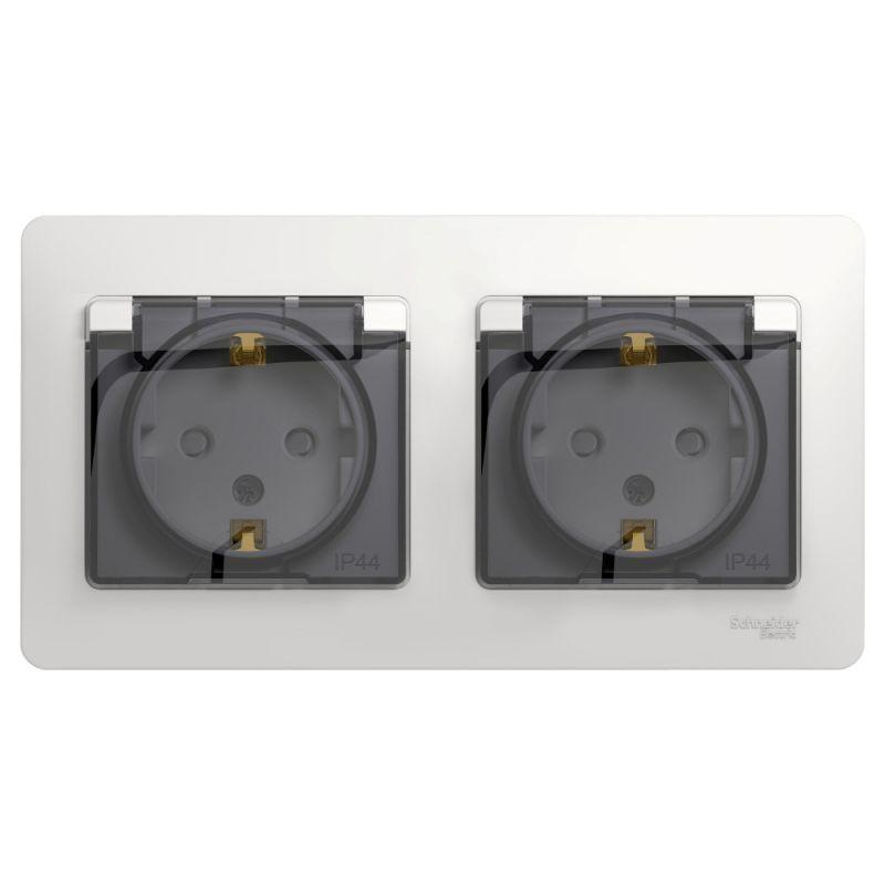 Розетка 2-м СП 2мод. Glossa 16А IP44 с заземл. защ. шторки в сборе бел. SchE GSL000147