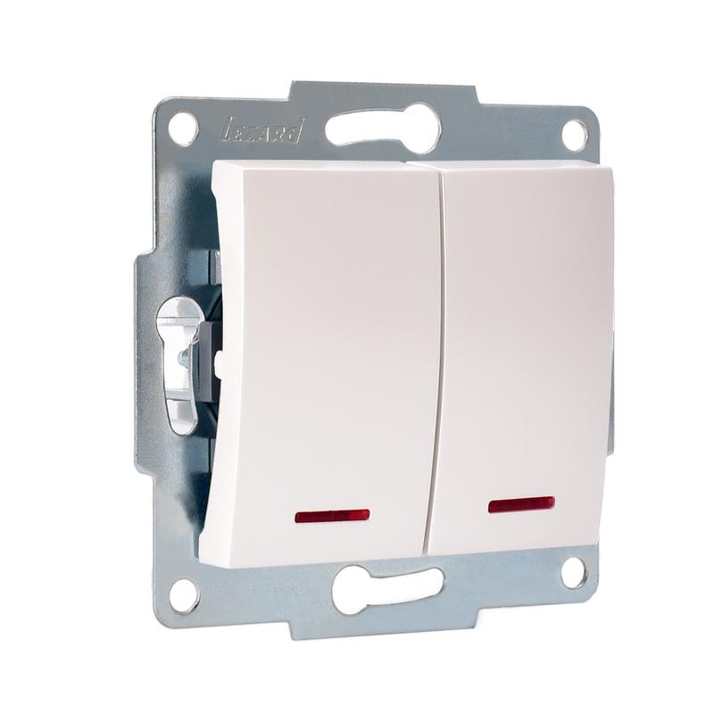 Механизм выключателя 2-кл. 1п СП Karina 10А IP20 с подсветкой жемчуж./бел. перламутр. LEZARD 707-3088-112