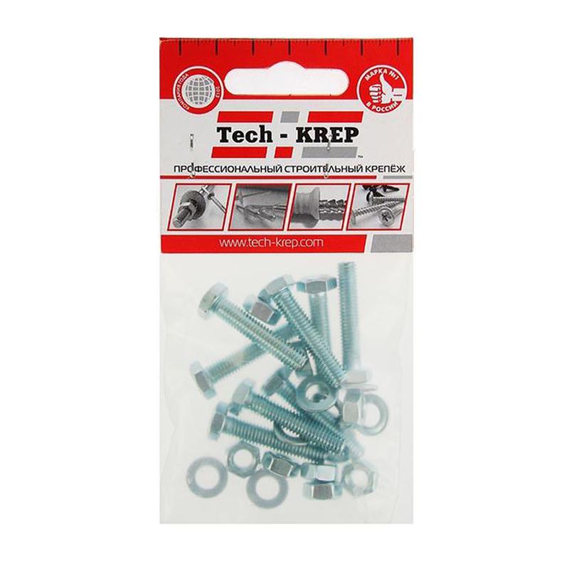 Болт М6х30 с шестигранной головкой цинк. с гайк. и шайб. DIN 933 (уп.8шт) класс прочности 8.8. пакет Tech-Krep 114051