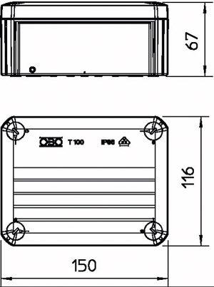 Коробка распределительная 150х116х67мм IP66 T 100 закрыт. сер. OE OBO 2007255