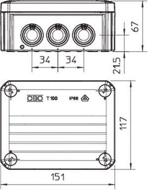 Коробка распределительная 150х116х67мм IP66 T 100 10х25 свет. сер. OBO 2007077