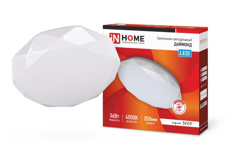 Наша компания реализует Светильник светодиодный DECO ДАЙМОНД 36Вт 230В 4000К 2340лм 350мм IN HOME 4690612033716 оптом со склада, по минимальным ценам от завода изготовителя.
