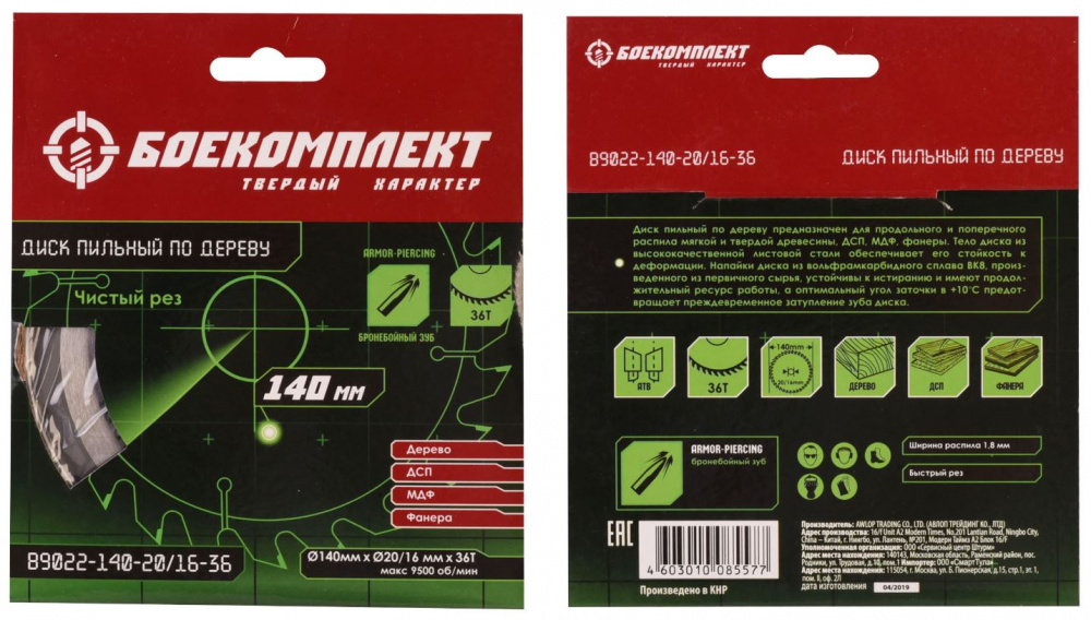 Особенности: Чистый рез! При работе данным диском потребление мощности на 30% МЕНЬШЕ, что продлевает срок службы электроинтрумента!Тело диска из высококачественной листовой стали обеспечивает его стойкость к деформации. Напайки диска из вольфрамкарбидного сплава ВК8, произведенного из первичного сырья, устойчивы к истиранию и имеют продолжительный ресурс работы, а оптимальный угол заточки в +10 ̊C предотвращает преждевременное затупление зуба диска.