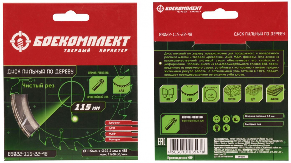 Наша компания реализует Диск пильный БОЕКОМПЛЕКТ B9022-115-22-48 оптом со склада, по минимальным ценам от завода изготовителя.