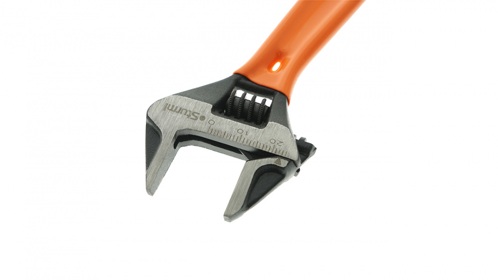 Особенности: Зев на 105% шире стандартного ключа такой же длины и малая длина рукоятки позволяют работать в недоступных для обычных ключей местах