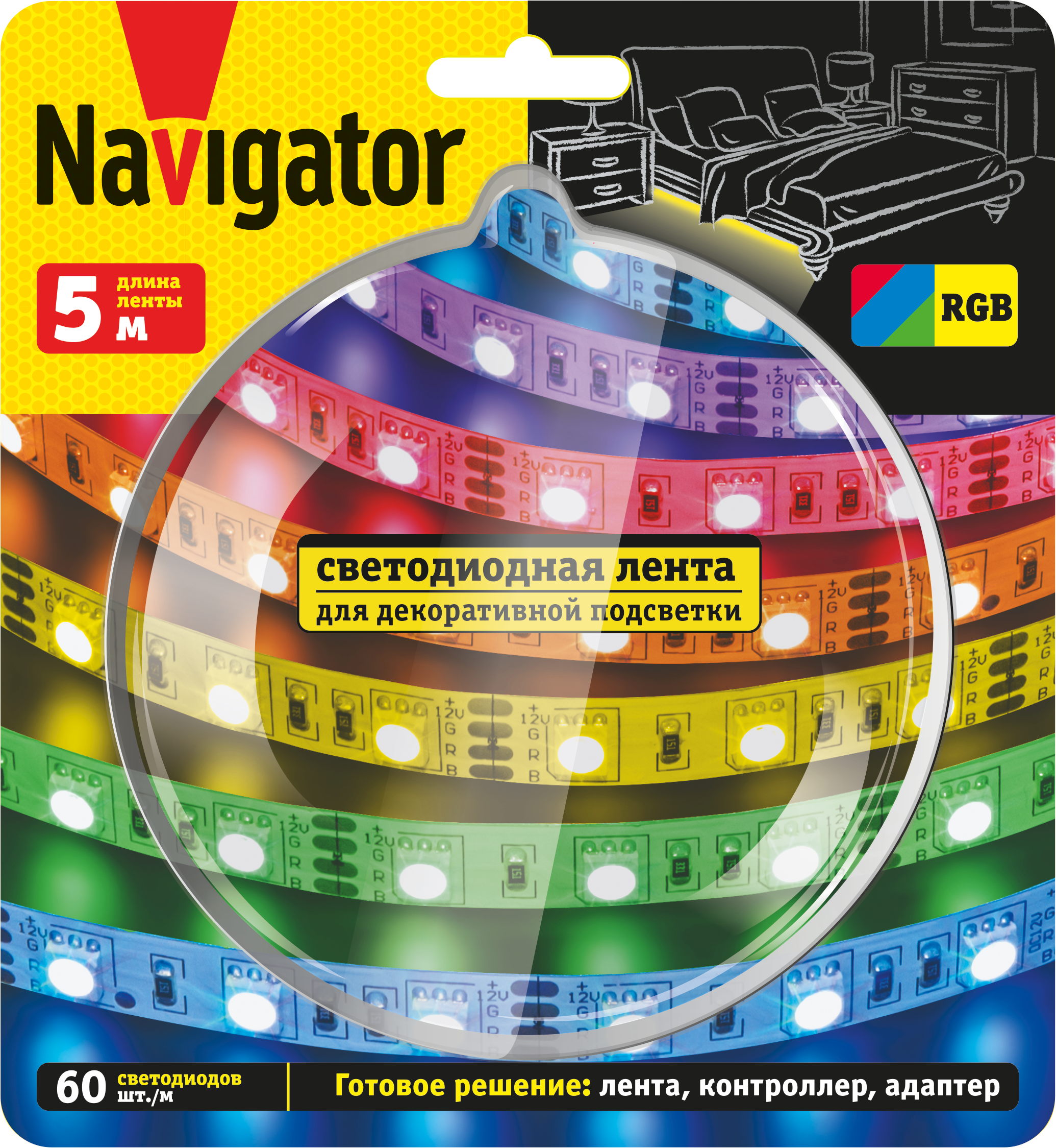 Лента LEDх60/м,5м,14.4w/m,12в.Pro,RGB Navigat