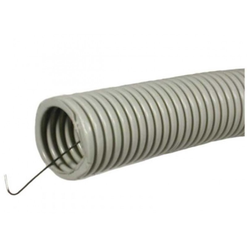 Труба гибкая ПВХ 16мм с протяжкой серая (100м) (500-016)