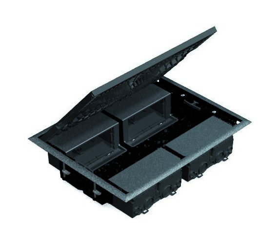 В интернет магазине компании ООО «Все для электромонтажа» на Главной странице вы можете перейти на страницу Каталог и выбрать категорию товара Кабеленесущие системы там вы найдете вкладку подкатегории Люки и коробки напольные где нужно выбрать Люки и коробки напольные в которой находится нужный вам товар Connect Люк на 4 CIMA-модуля (8 модулей 45х45 мм) глубина 70-100мм посадка 170х265мм max 900кг графит (SF470-14).