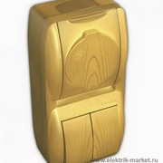 В интернет магазине компании ООО «Все для электромонтажа» на Главной странице вы можете перейти на страницу Каталог и выбрать категорию товара Розетки и выключатели там вы найдете вкладку подкатегории Розетки выключатели открытого монтажа (наружные) где нужно выбрать Совмещенные блоки в которой находится нужный вам товар Ната Выкл х2 +розетка с/з с/кр ольха гориз.