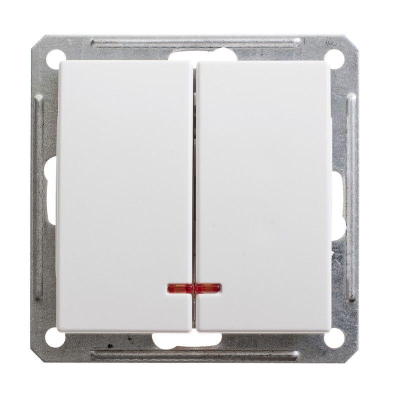 W59 Выключатель двухклавишный скрытый в рамку с индикацией 16А белый (VS516-251-1-86)