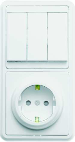 БЭЛЛА Блок БКВР-036 Выключатель трехклавишный + евророзетка со шторками белый (5847)
