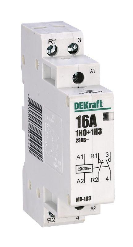 Наименование товара: Контактор модульный МК-103 1НО+1НЗ 16А 230В DEKraft 18051DEK