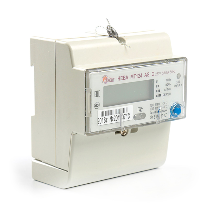 Счетчик электроэнергии НЕВА МТ 124 AS O 5(60) однофазный многотарифный, 5(60), кл.точ. 1.0, D, ЖКИ, 66 ФЛ (6120460)