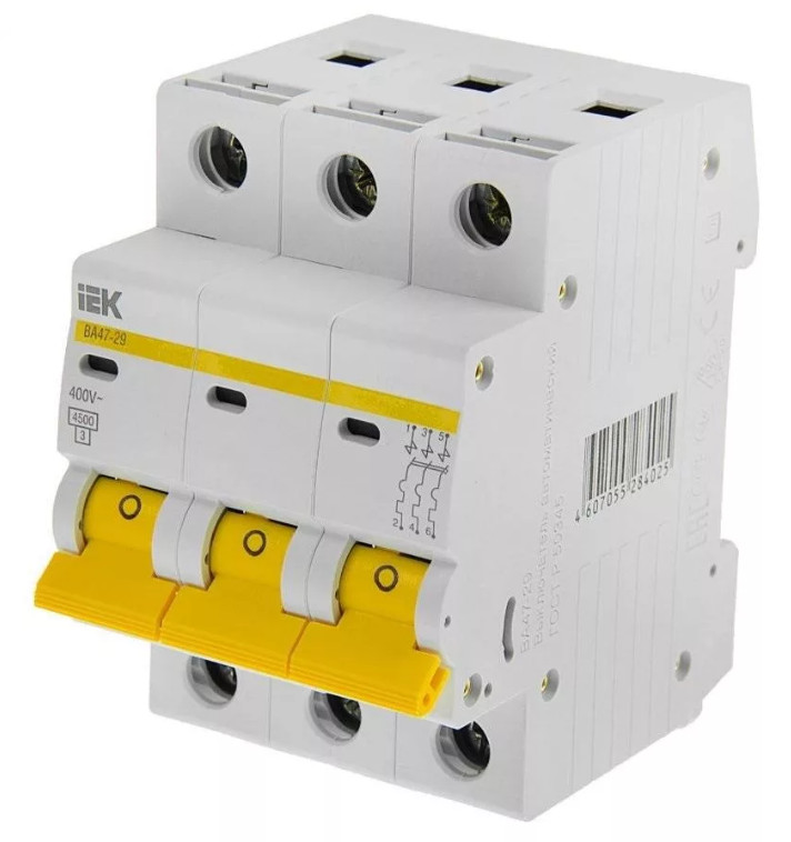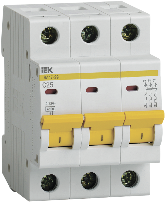 Выключатель автоматический трехполюсный 25А C ВА47-29 4.5кА (MVA20-3-025-C)