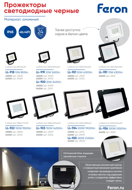 Компания «Все для электромонтажа» гарантирует высокое качество продукции и сервисное сопровождение на всех этапах сотрудничества. Для крупных клиентов предусмотрена возможность технической поддержки и консультаций по правильной эксплуатации светодиодных прожекторов FERON. Выбирая нас в качестве партнера, вы получаете надежного поставщика, который ценит долгосрочное сотрудничество и стремится к максимальному удовлетворению потребностей заказчиков. Таким образом, оформление заказа оптом – это не только выгодно, но и удобно, обеспечивая стабильно высокое качество освещения для ваших проектов.