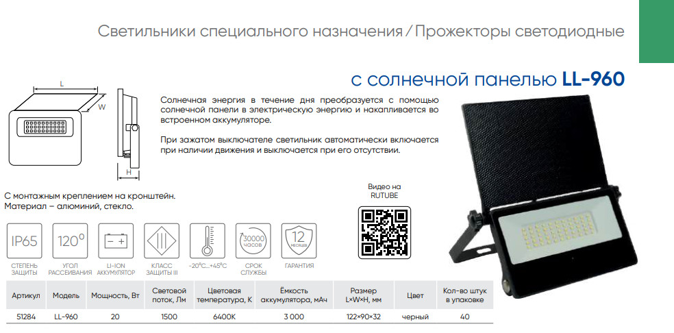 Характеристики прожектора светодиодного 50 Вт черного цвета
