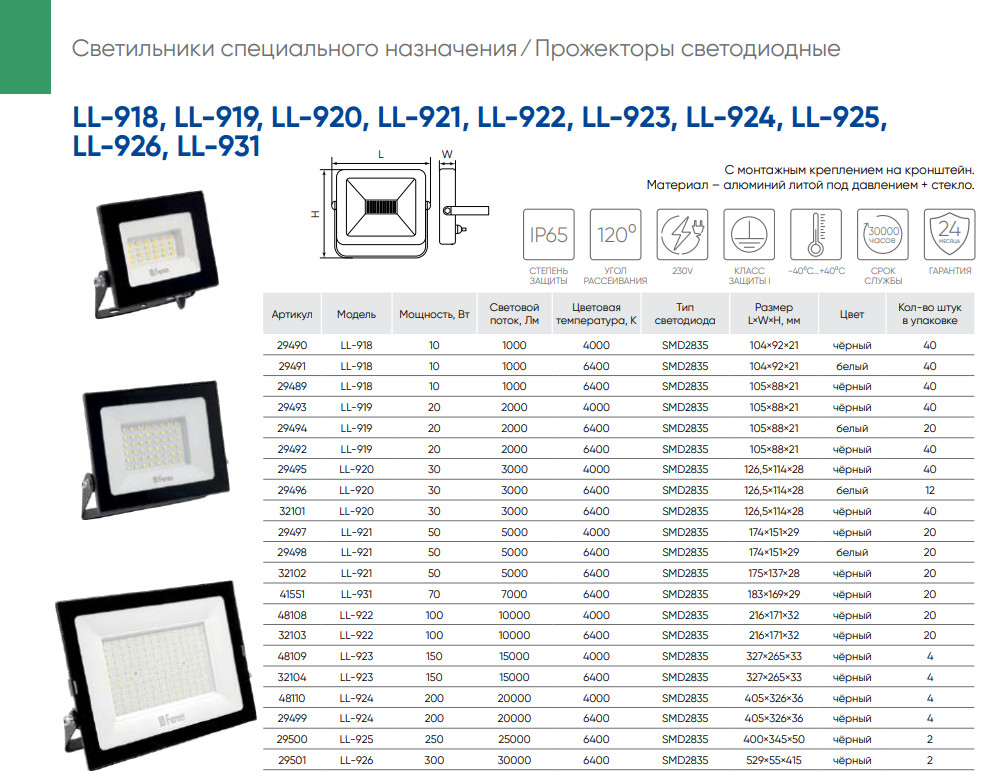 Наша компания реализует Прожектор светодиодный ДО-50w 4000К 4750Лм IP65 черный (LL-921) оптом со склада, по минимальным ценам от завода изготовителя.