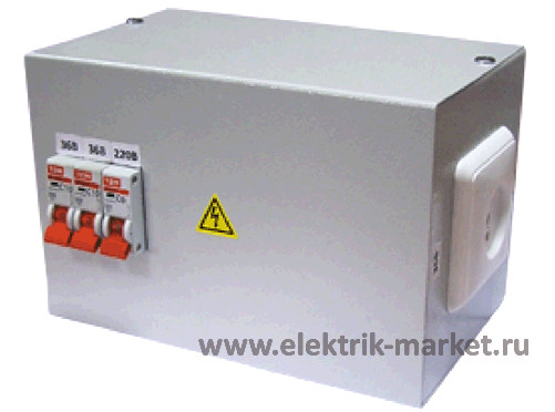 Ящик с понижающим трансформатором ЯТП 0.4 220/36В IP54 с тремя автоматами (ОС0000016838)