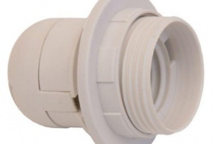 Наша компания реализует Патрон люстровый Е27 пластик с кольцом белый (LH110) оптом со склада, по минимальным ценам от завода изготовителя.