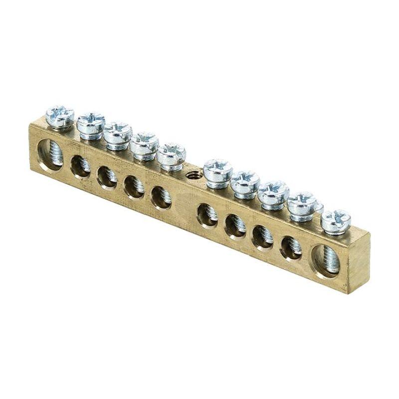 Шина нулевая с заземлением 63.10 латунь (sn0-63-10)