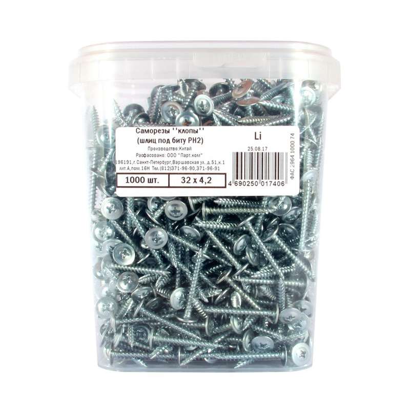 Наименование товара: Саморез "клопы" 4.2х32мм ведро (уп.1000шт) Партнер 30254