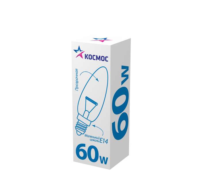 Наименование товара: Лампа накаливания Свеча 60Вт E14 прозр. Космос LKsmSCnCL60E14v2