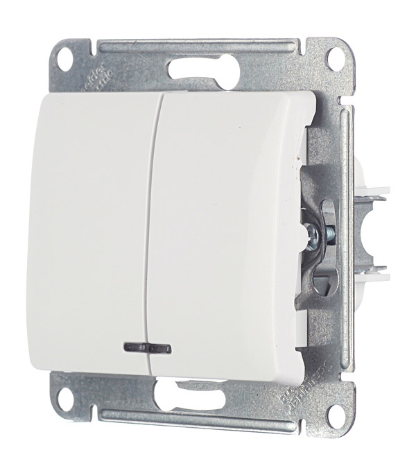 GLOSSA Выключатель двухклавишный с подсветкой в рамку алюминий сх.5а (GSL000353)